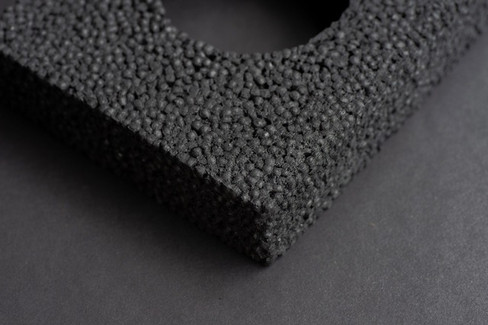 Visuellement proche du polystyrène mais de couleur noire, Carbon Cell reprend un procédé similaire : des pastilles de biochar et de polymères biosourcés sont chauffées pour se dilater en une mousse légère, isolante et moulable. Le matériau utilise les mêmes machines que le polystyrène, facilitant une adoption industrielle rapide. En fin de vie, les polymères naturels se dégradent au compost domestique, ne laissant qu’un biochar stable capable d’enrichir les sols.